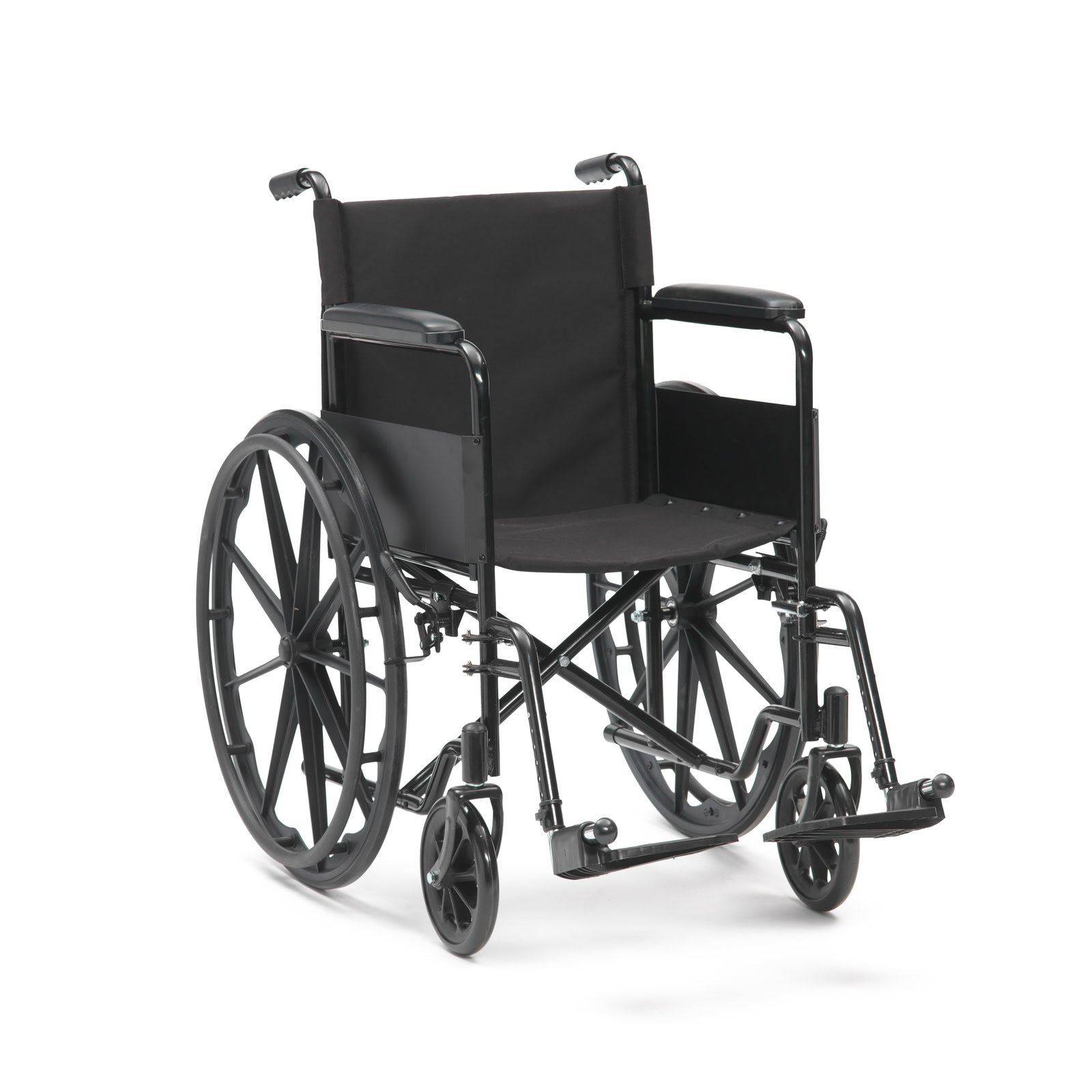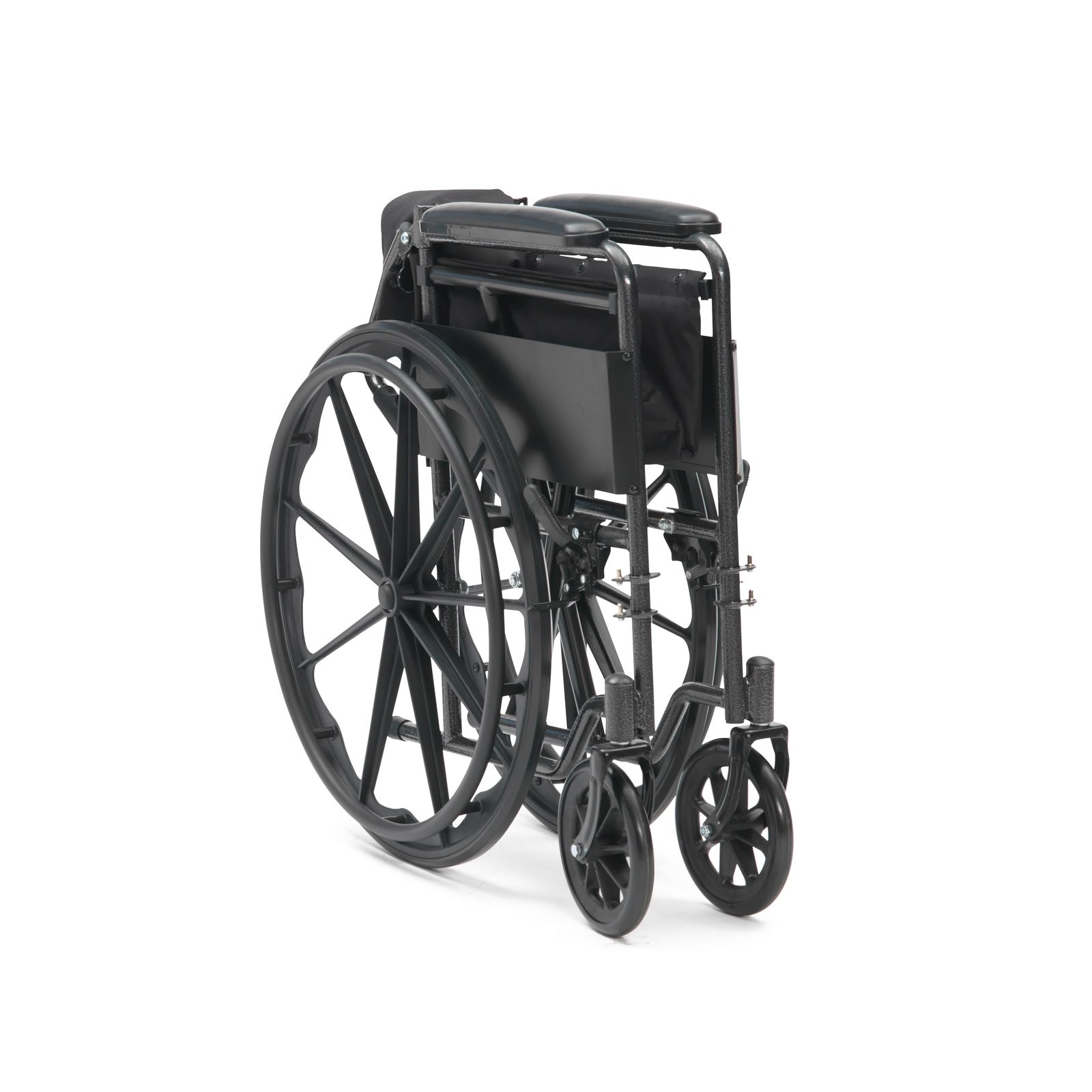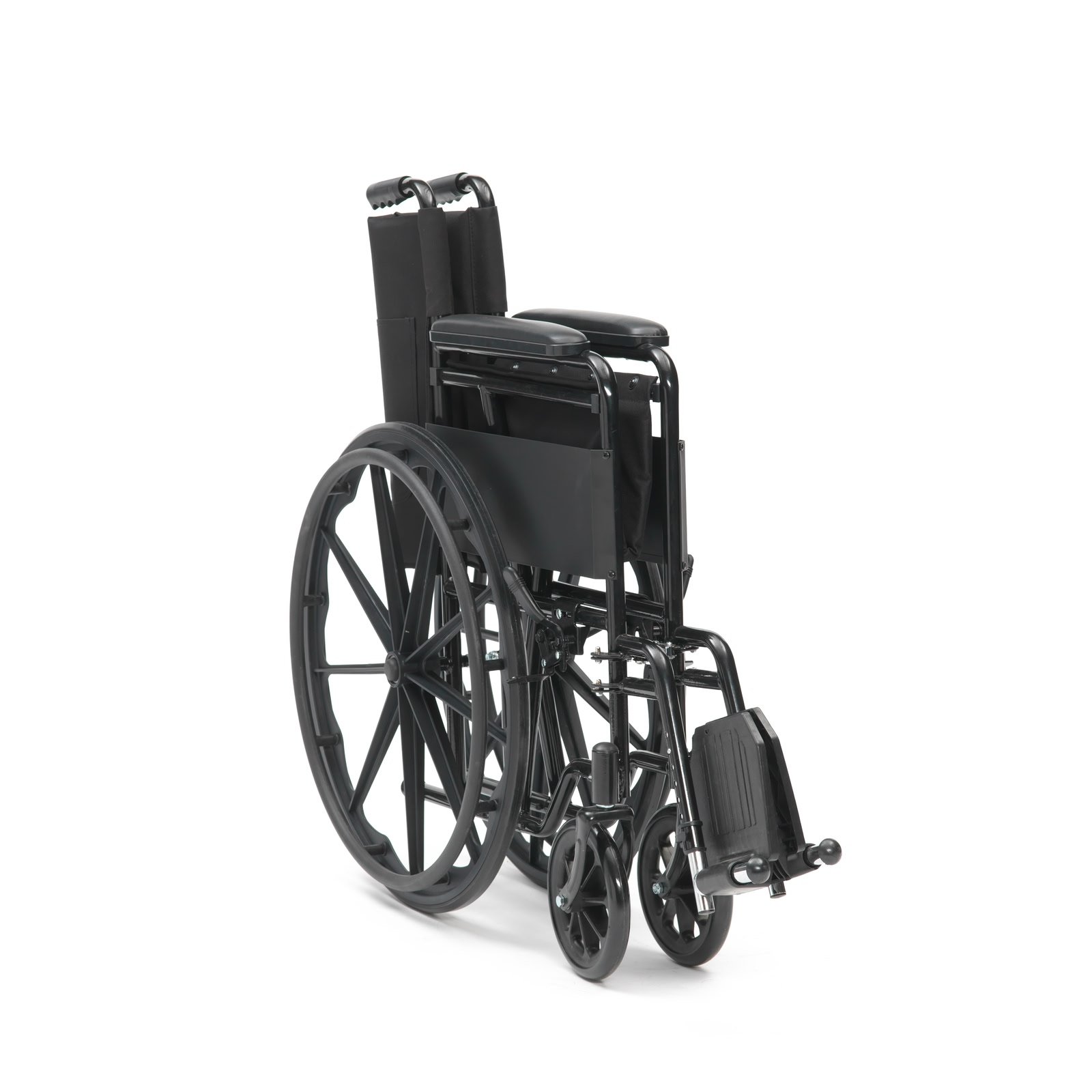 Comfort and convenience are seamlessly integrated into the Silver Sport’s design. The durable vinyl upholstery is comfortable for the user and incredibly easy to wipe clean, while the padded armrests provide excellent support. For safer and easier transfers, the footrests conveniently swing away, allowing you to get closer to seats, beds, or tables. When it’s time to store or transport the chair, the frame folds easily to a compact size, making it simple to manage.