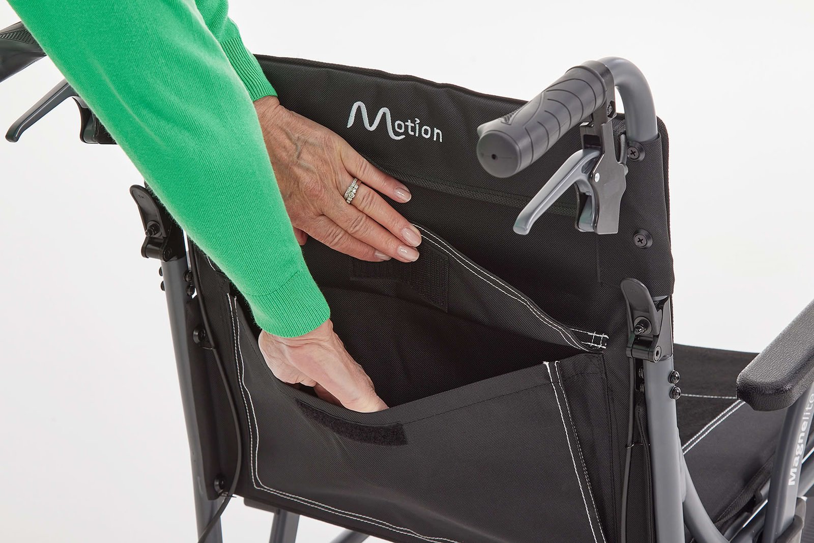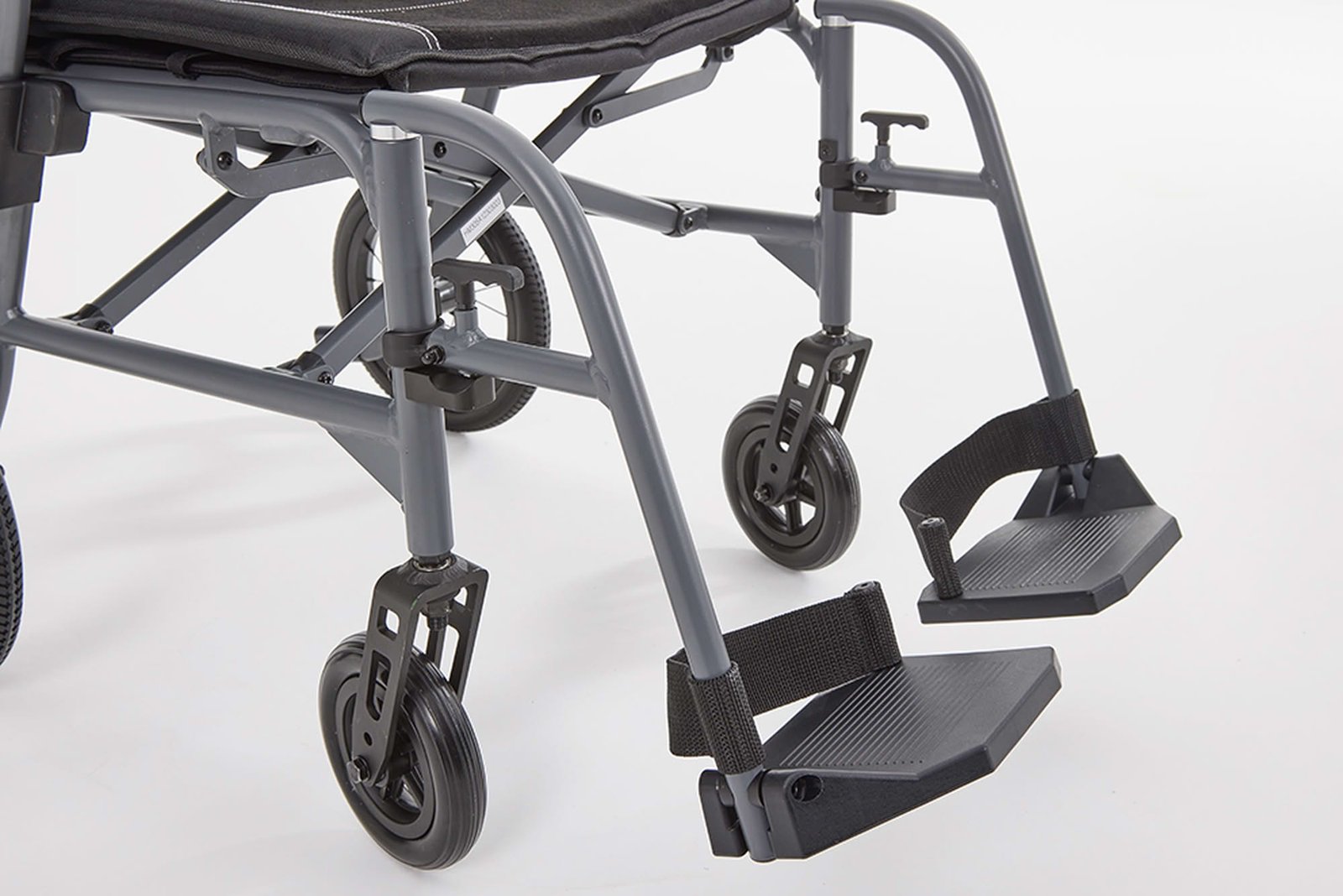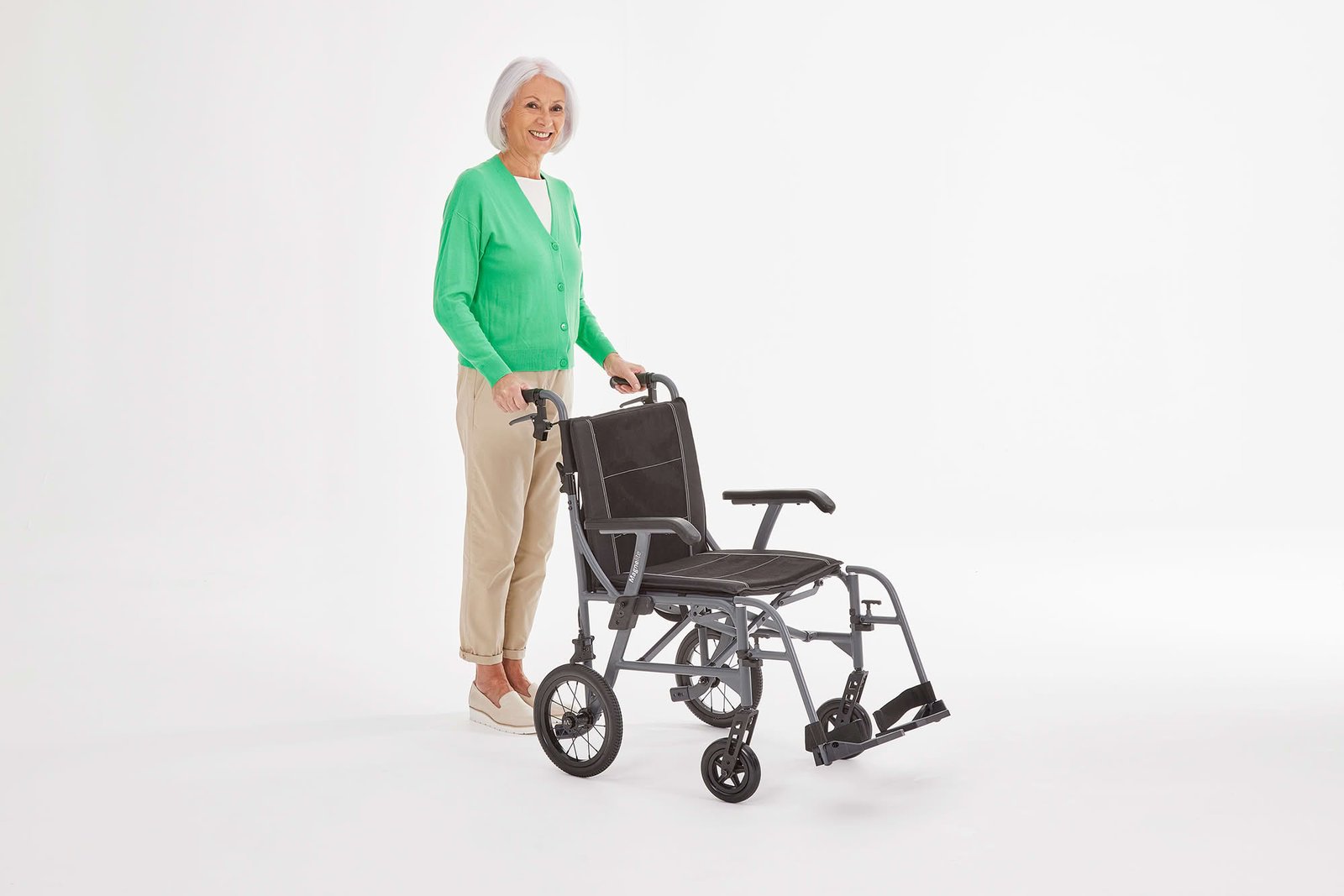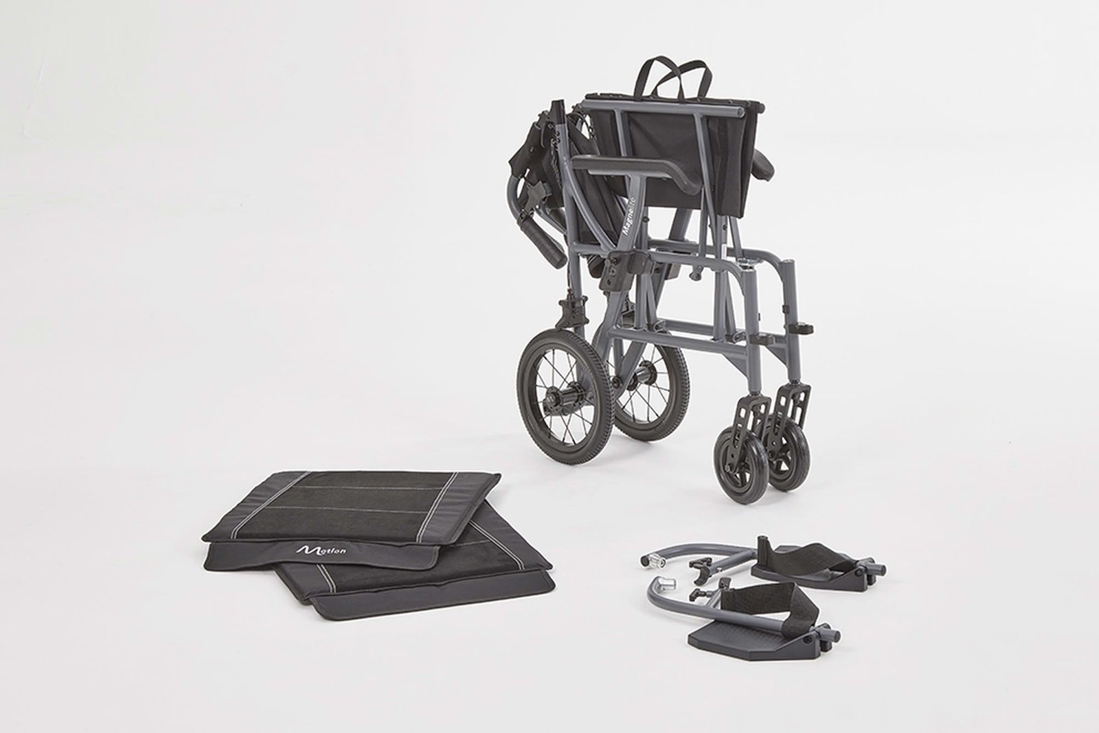 The Magnelite Transit Wheelchair combines innovative engineering with exceptional comfort and portability. Its magnesium alloy frame provides strength without the weight, making it one of the lightest transit chairs available — just 6.2 kg carry weight with wheels and footrests removed.